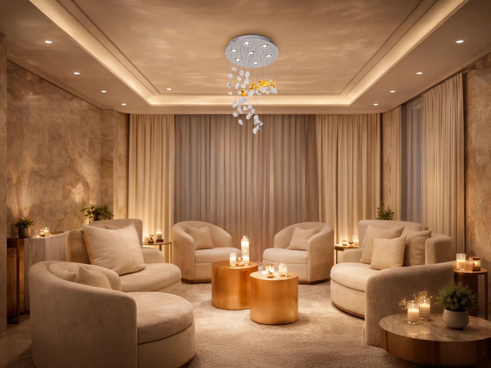 Chrómová stropná podstava dopĺňa celkový dizajn svietidla a zabezpečuje jeho stabilitu. LED technológia poskytuje príjemné osvetlenie s nízkou spotrebou energie a dlhou životnosťou. Svietidlo je vhodné do obývacích izieb, chodieb, hál alebo ako dizajnový prvok do moderných interiérov.