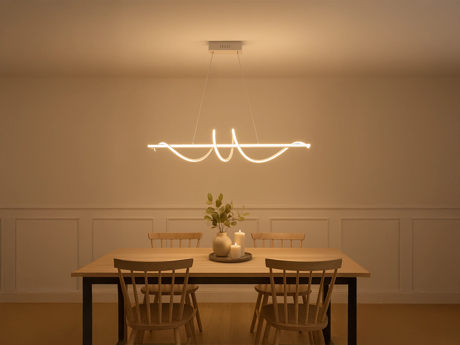 LED dizajnové závesné svietidlo s diaľkovým ovládačom RF 2,4GHz značky NEDES, je lampa vhodná do kuchyne, jedálne, spálne, chodby alebo obývačky. Tieto svietidlá vynikajúco kombinujú moderný štýl s najvyššou kvalitou. Svetlá sú ovládané SMART technológiu pomocou aplikácie NEDES Smart.