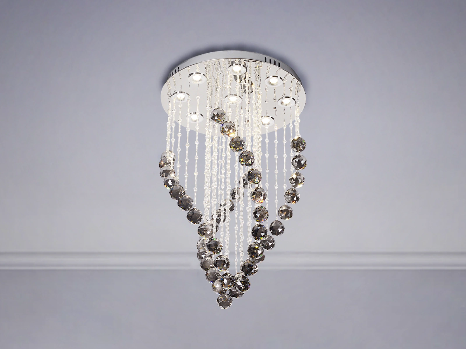 Moderné LED svietidlo s jemným krištáľovým dizajnom značky NEDES vyniká jemnou hrou svetla a vzdušným prevedením. Zavesené brúsené krištále vytvárajú príjemný svetelný efekt a dodávajú interiéru elegantný vzhľad.