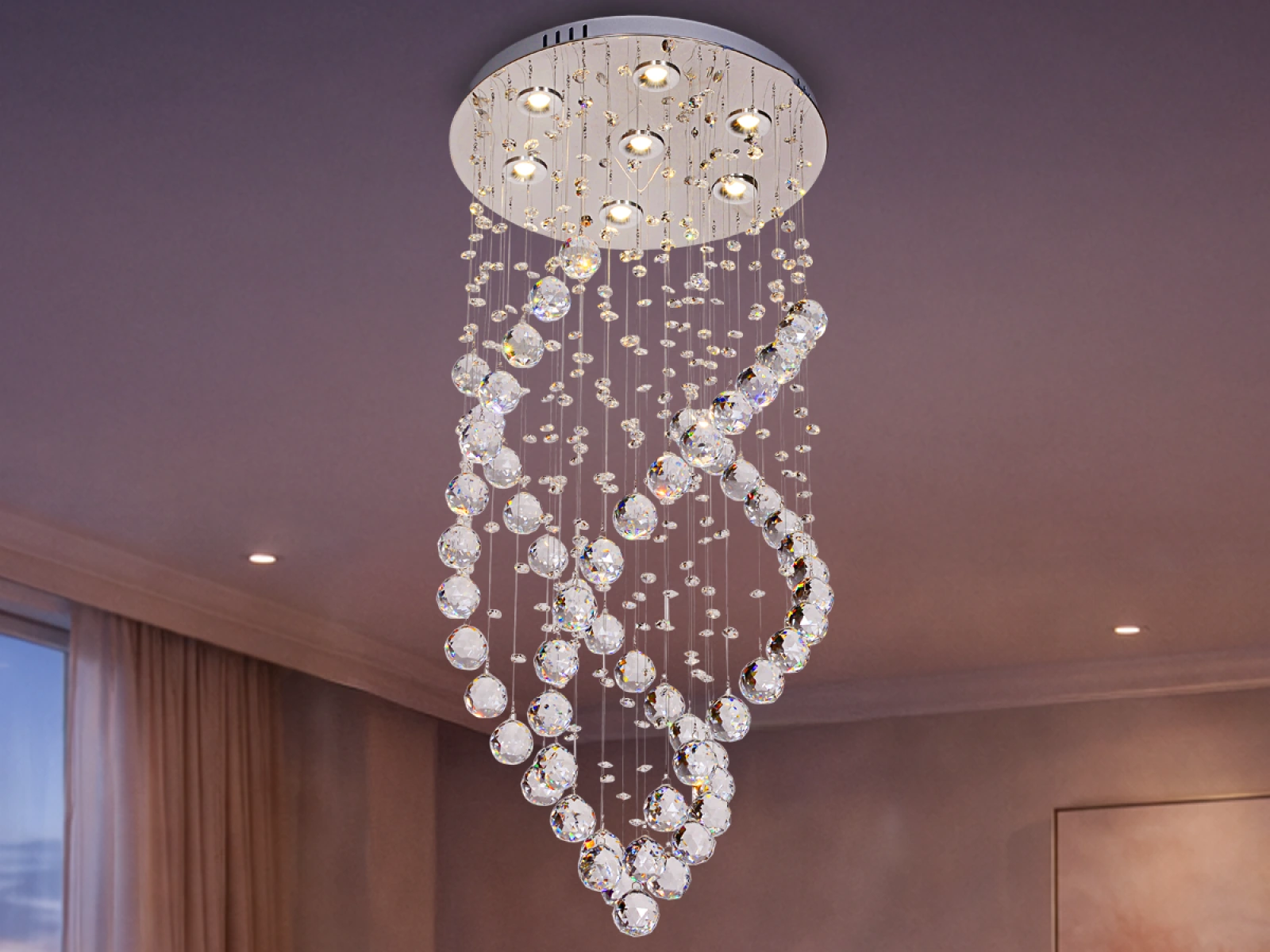 Moderné LED svietidlo s jemným krištáľovým dizajnom značky NEDES vyniká jemnou hrou svetla a vzdušným prevedením. Zavesené brúsené krištále vytvárajú príjemný svetelný efekt a dodávajú interiéru elegantný vzhľad.